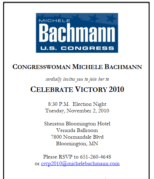 Bachmann will hold her election night party outside her district in Bloomington: